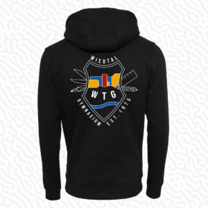 Das Highlight: Auf der Brust und auf der Rückseite ist das offizielle Wiedtal Gymnasium-Motiv aufgedruckt – ein echter Hingucker, der deinen Stolz auf deine Schule dezent und stilvoll zum Ausdruck bringt.
